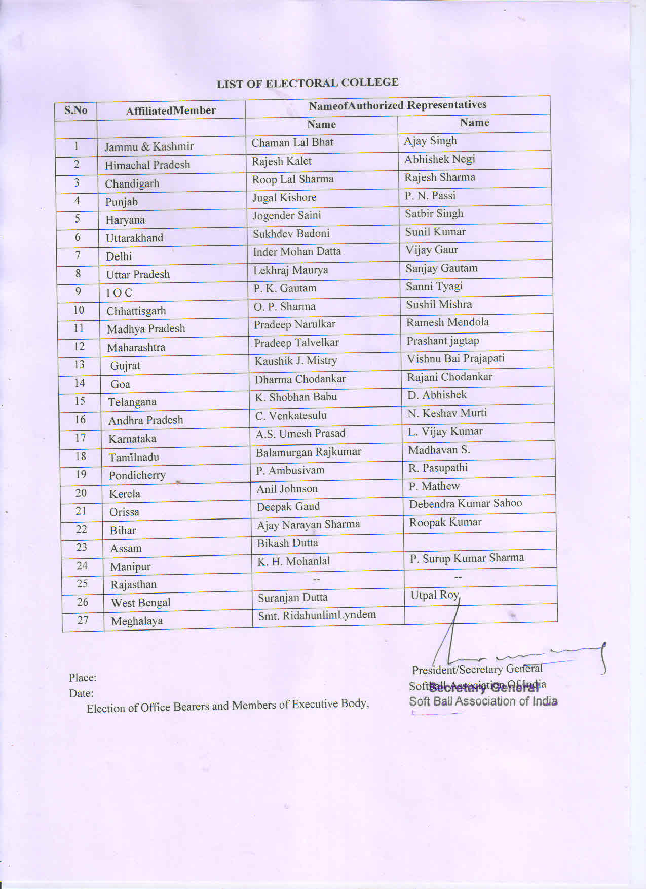 List of Electoral College 2022
